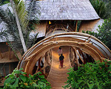 Elora Hardy left a successful career in the NY fashion scene to build bamboo houses in Indonesia. The Bali resident and her team have spent the last 5 years revolutionizing bamboo construction in the belief that it is an underused but ideal renewable resource. Hardy uses boron, which occurs naturally in nature, to treat the bamboo and make it indigestible to insects.